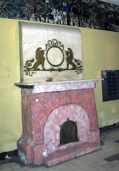 Это там же - на Рубинштейна, 23. Парадная постоянно открыта: лестница в плохом состоянии, но зато старый камин сохранился и без всякой реставрации.