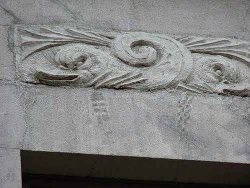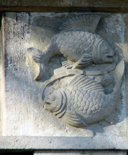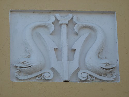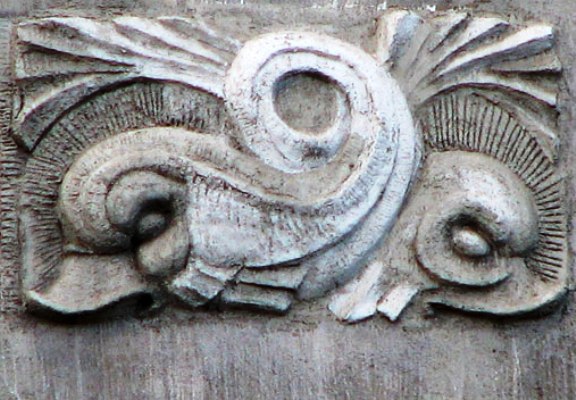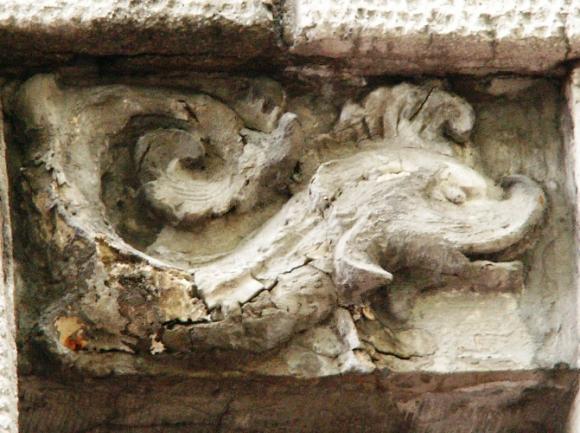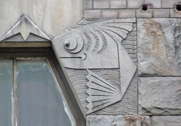 Интересно: львы есть, кошки есть, птицы тоже где-то мелькали... А теперь предлагаю собрать всех рыб, которые плавают на фасадах города (или ещё где-нибудь:).