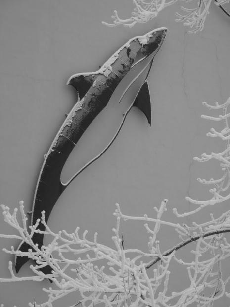 Переулок Макаренко, 9 -- дельфины, играющие с мячом - земным шаром
