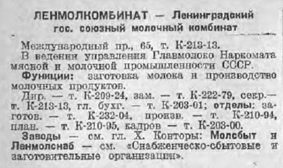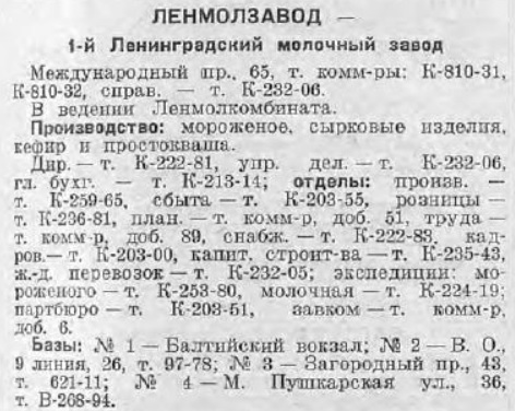 Первый Молочный Завод Ленмолкомбината