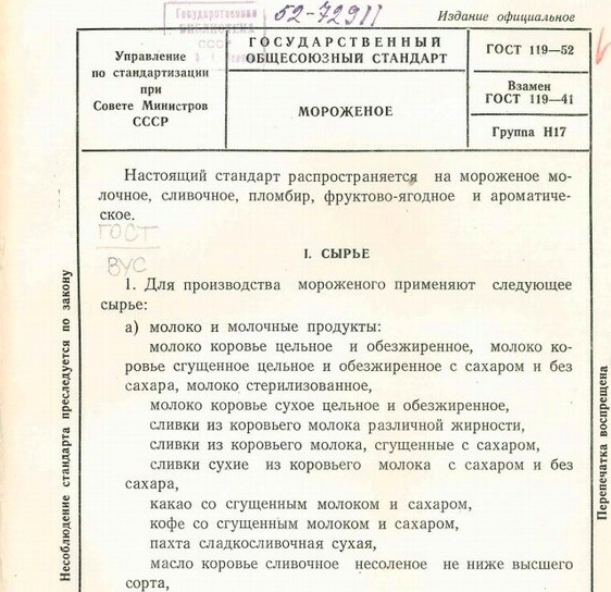 Тоже вот Молочное мороженое по ГОСТ 119-41 послевоенное до 01.02.1953