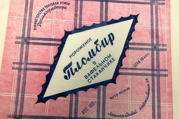 На фото этикета от мороженого пломбир в вафельном стаканчике периода 1966-1973 (74)