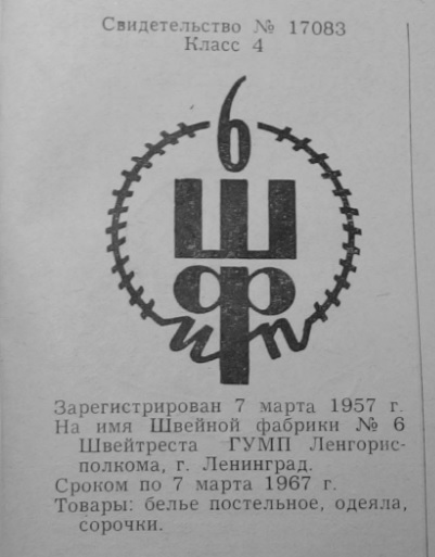 Ф-ка N6 (клеймо которое у них было до вхождения в ЛПШО "Волна" с 1957 по 1964 год