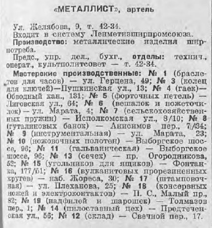 В начале 50х Артель "Метбытремонт" Смольнинского района находилась