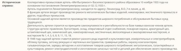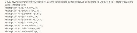 и Артели "Метбытремонт" Василеостровского района (В.О.7-я линия.40)