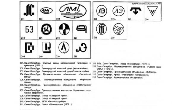 Некоторые товарные знаки (клейма) Ленинградских заводов времён СССР