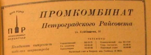 Промкомбинат Петроградского Райсовета в Ленинграде