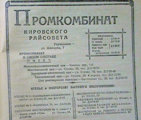 Промкомбинат Свердловского Райсовета в Ленинграде