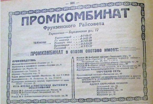 Промкомбинат Фрунзенского Райсовета в Ленинграде