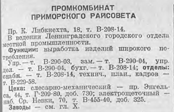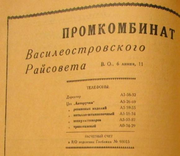 Промкомбинат Октябрьского Райсовета (Октябрьский Промкомбинат) в Ленинграде