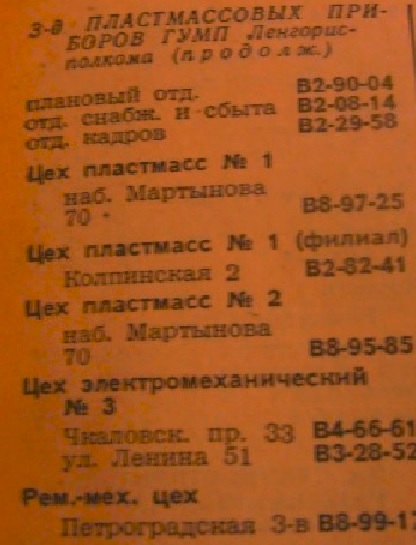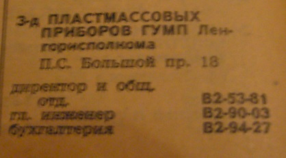 в Завод Пластмассовых Приборов (Большой пр.18 П.С)