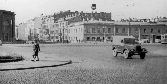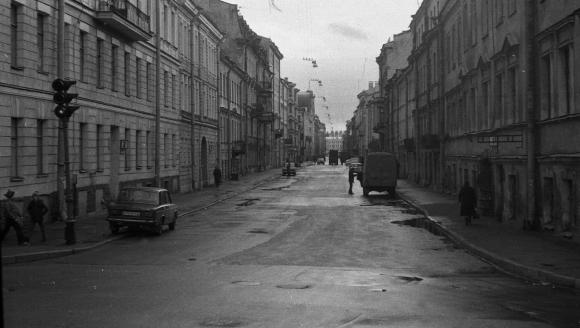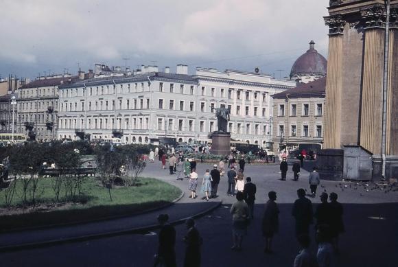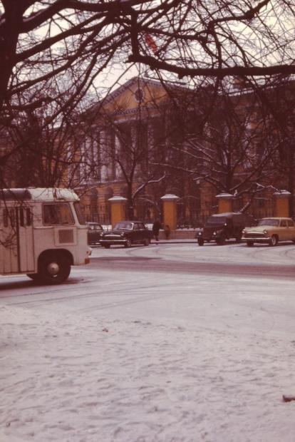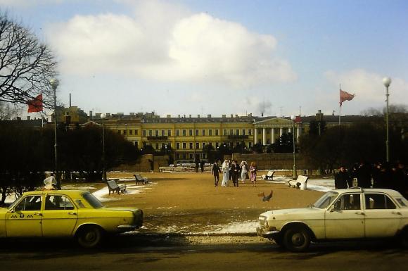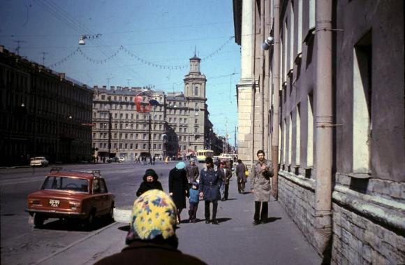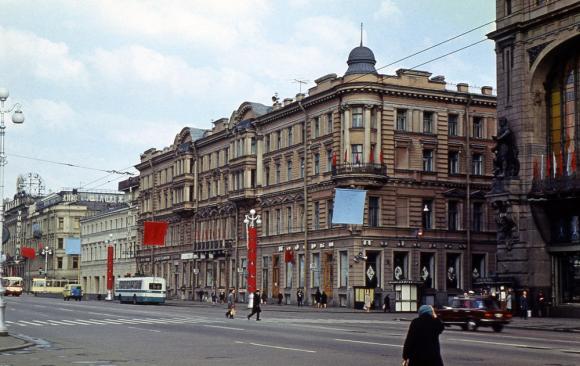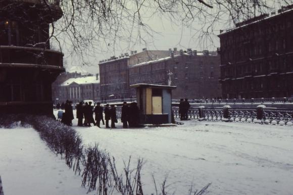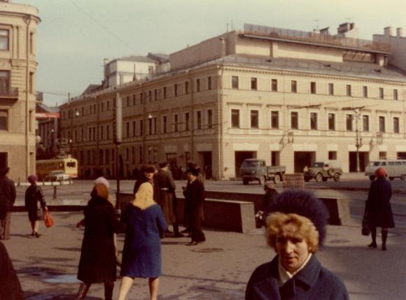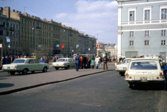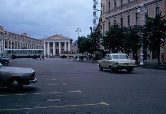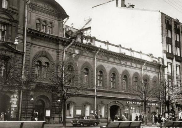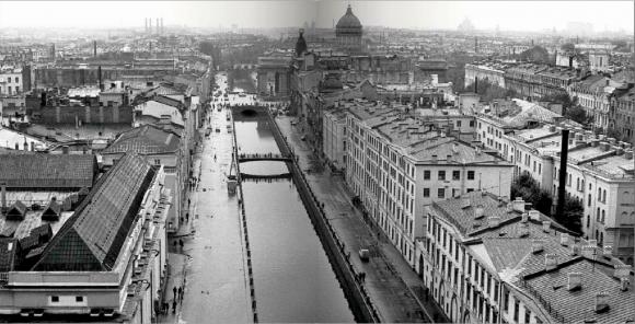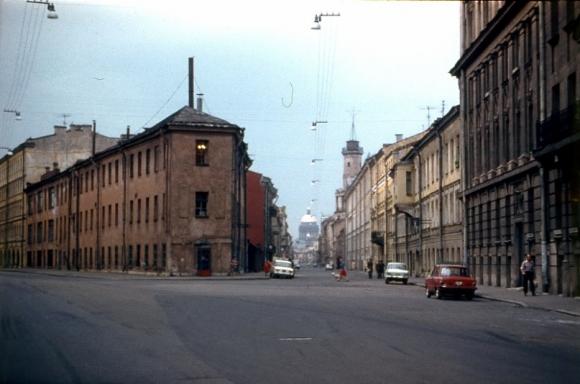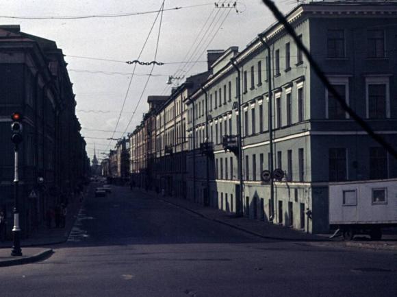 Могу предположить, что снимок сделан с балкона (скорее всего, правого верхнего) дома по Невскому пр., 132. Может быть, есть другие версии?