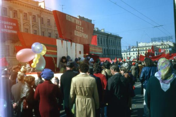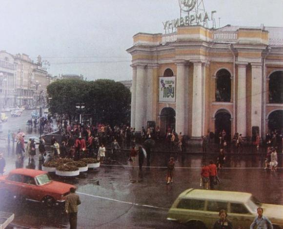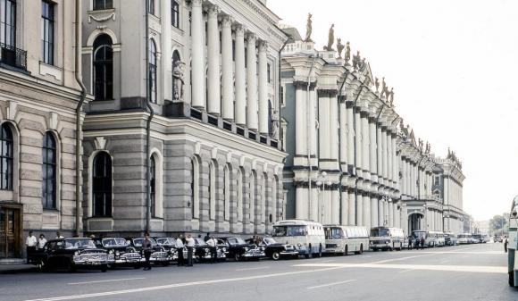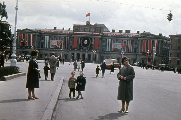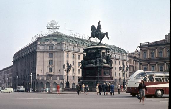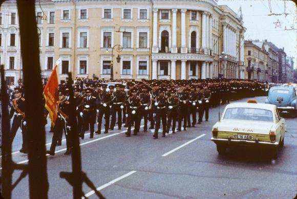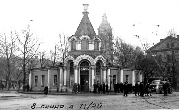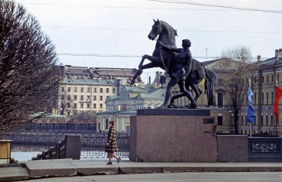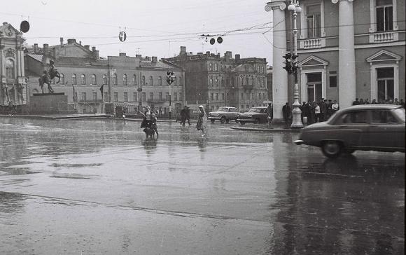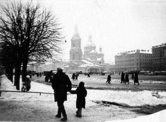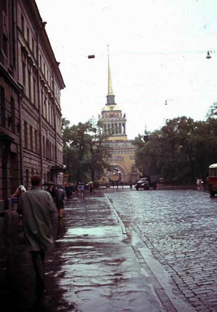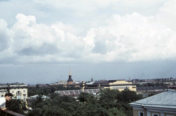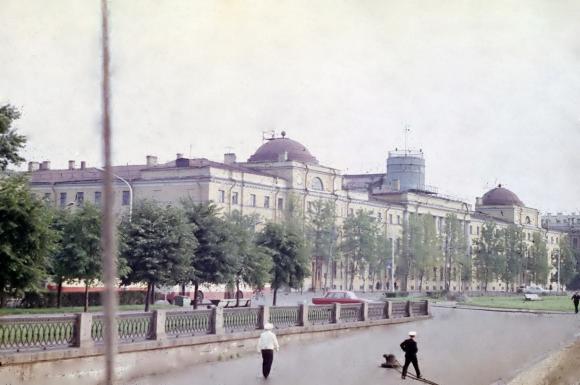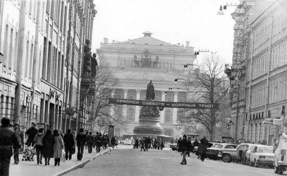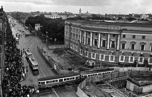 Могу предположить, что снимок сделан с балкона (скорее всего, правого верхнего) дома по Невскому пр., 132. Может быть, есть другие версии?