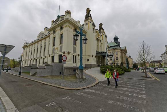 Городской театр (1909) Создателем примечательного необарочного интерьера стала компания «Феллнер и Хелмер» из Вены, одна из лучших в мире по тем временам. Внешний облик здания создавали архитекторы Ян Криженецкий и Эмиль Кралик, и он получил выраженные черты стиля ар-нуво.Театр стоит за городским парком и ярко выделяется как очевидная архитектурная доминанта квартала. Здание декорировано керамическими масками, которые символизируют разные виды театрального искусства.