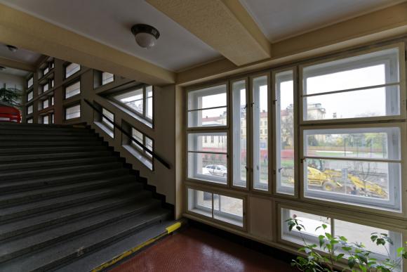 Иржи Венделина Крохи в городе.Здание техникума было построено в 1923 - 1927 гг. В свое время оно было крупнейшим и самым дорогим общественным зданием на территории республики. Его автором является архитектор Иржи Венделин Кроха, чьи проекты в наибольшей степени способствовали формированию вида города Млада-Болеслав в годы первой республики.