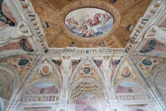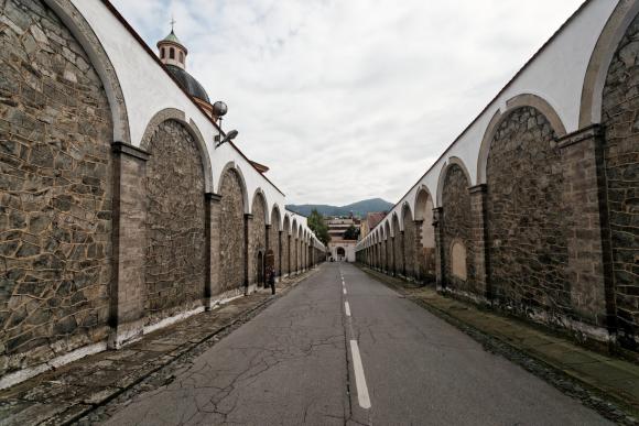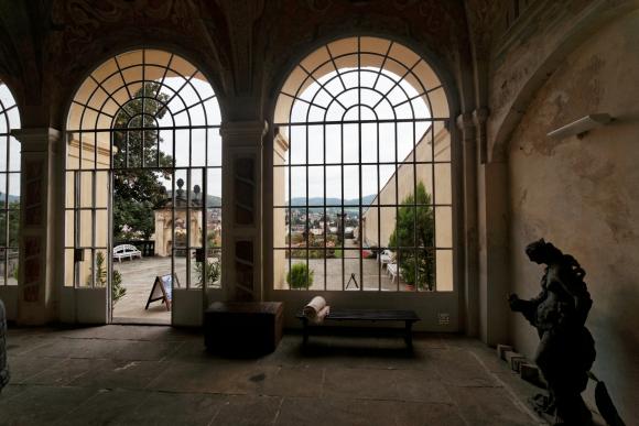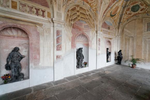 А это знаменитая Новобарочная колоннада, постороенная в 1889 году с уникальными потолочными фресками. Часть росписи посвящена романтической и трагической любви Гете.