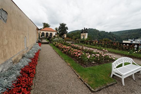 Самой заметной достопримечательностью является, разумеется, Дечинский замок (Decinsky zamek, Schloss Tetschen-Bodenbach), возвышающийся над городом и рекой на изолированном скальном массиве. Основанный еще в XVI веке, он неоднократно перестраивался и сейчас представляет собой живописный барочный комплекс. Однако интерьеры его не впечатляют, поскольку долгое время он использовался под бараки и склады - причем всеми, от немцев до русской оккупационной администрации и самих чехов, лишь колокольня сохранила часть первоначальной отделки. Главная привлекательность замка - барочный по архитектуре комплекс розария на террасе северной стены скалы. Кроме самого собрания роз, здесь можно увидеть барочный бельведер и церковь Святого Креста (sv Kriz, 1691 г.) - один из немногих объектов замка, сохранивших свой богато украшенный первоначальный интерьер.