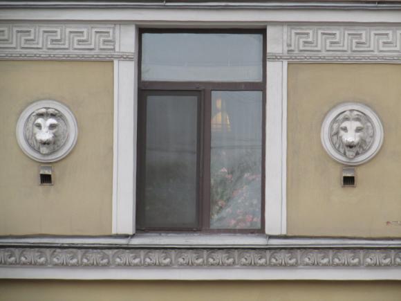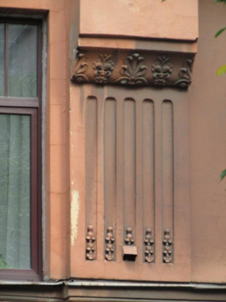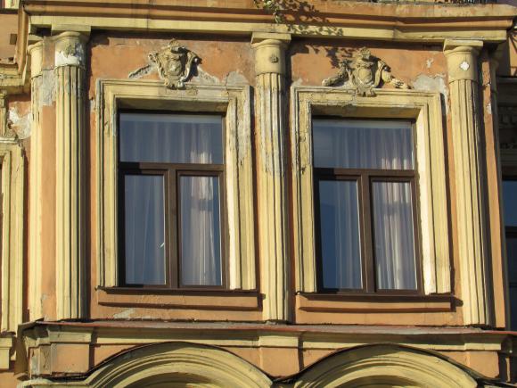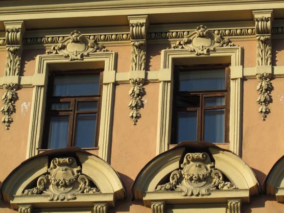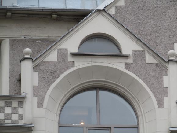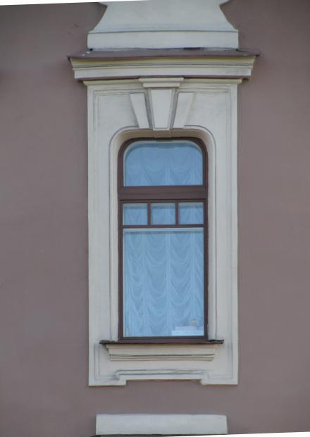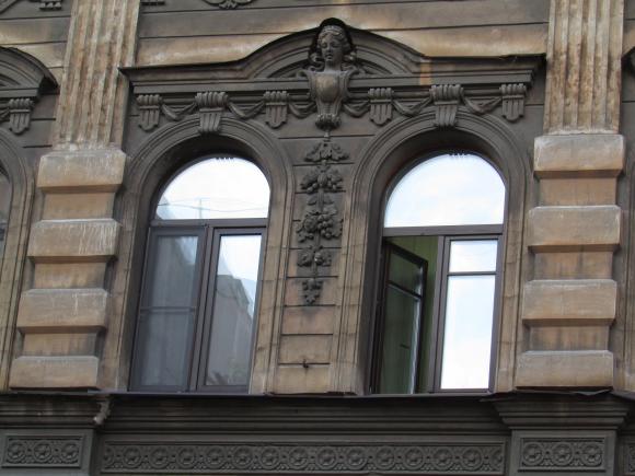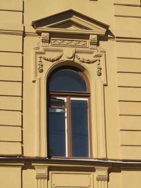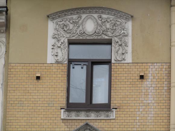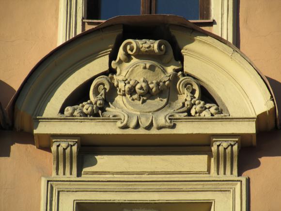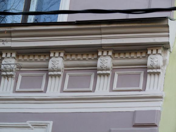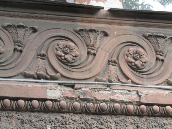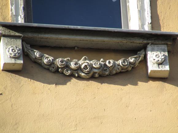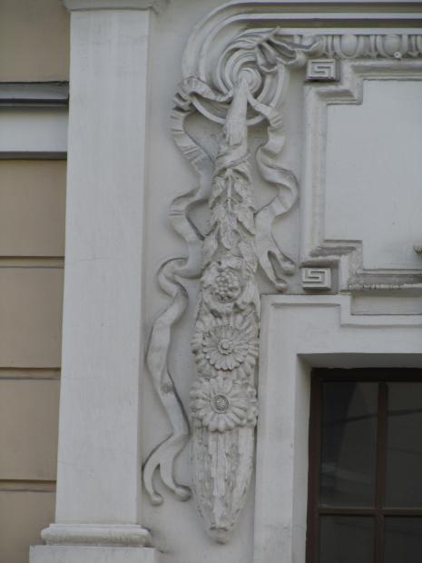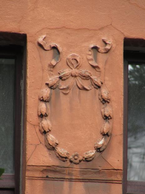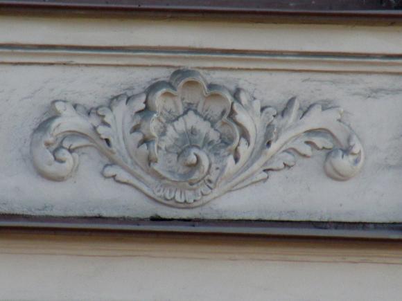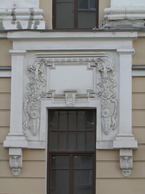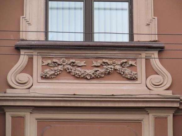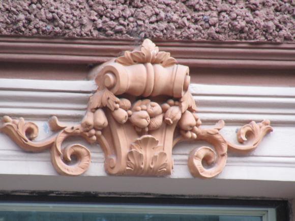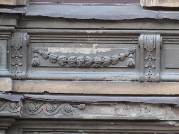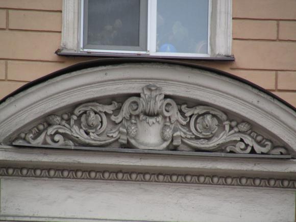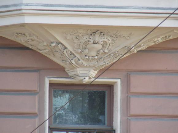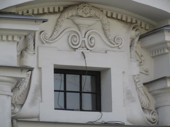 Декор над окнами 2-го этажа в центральной части фасада.