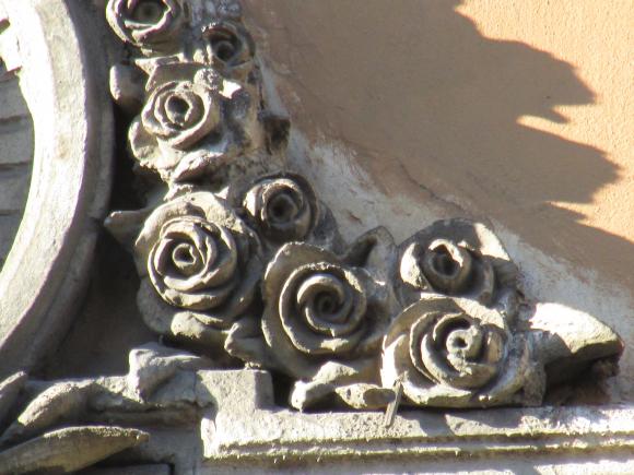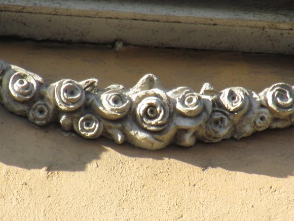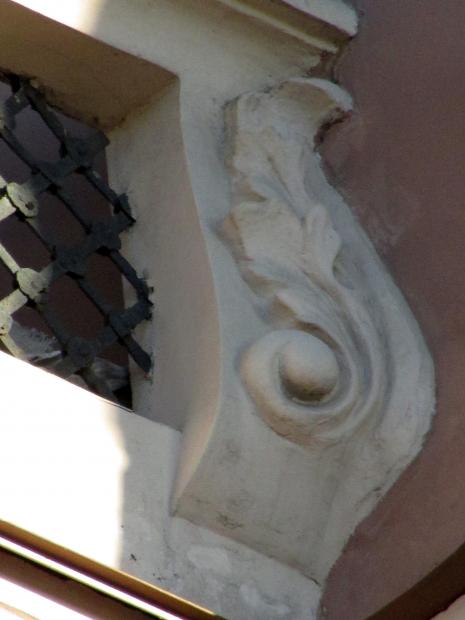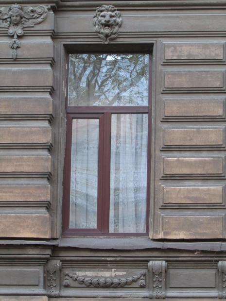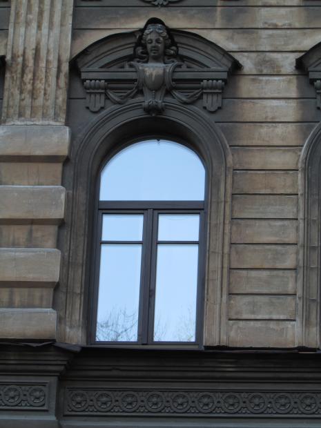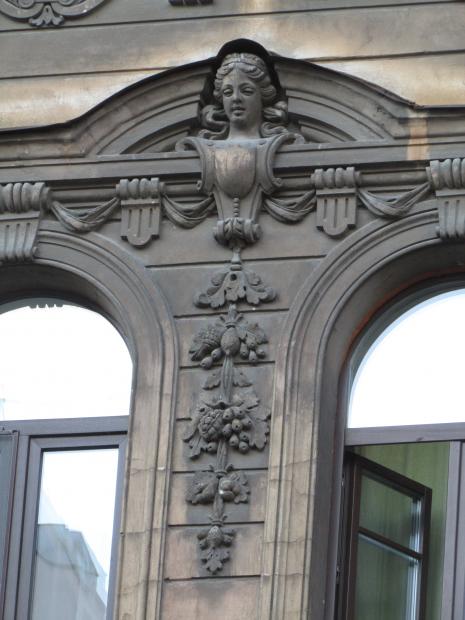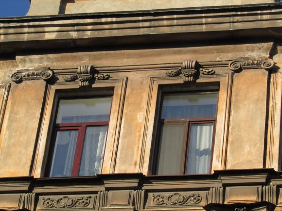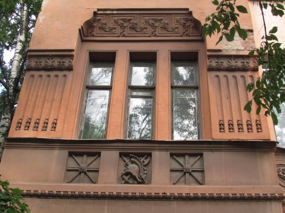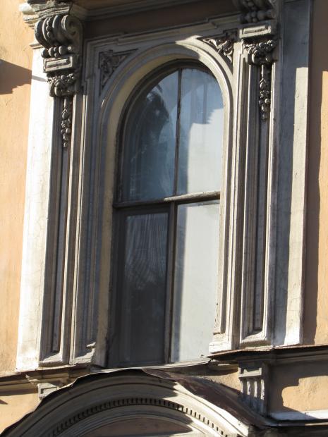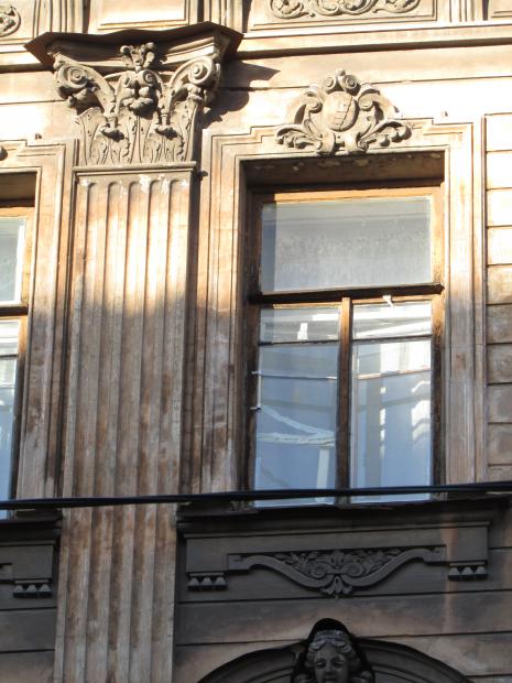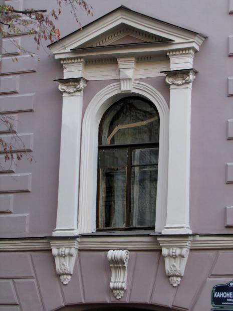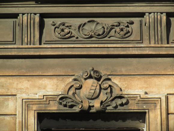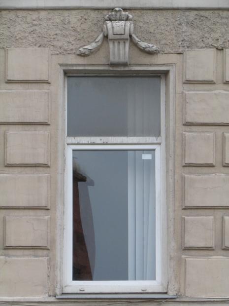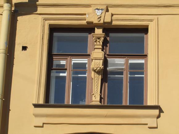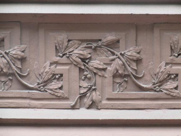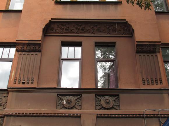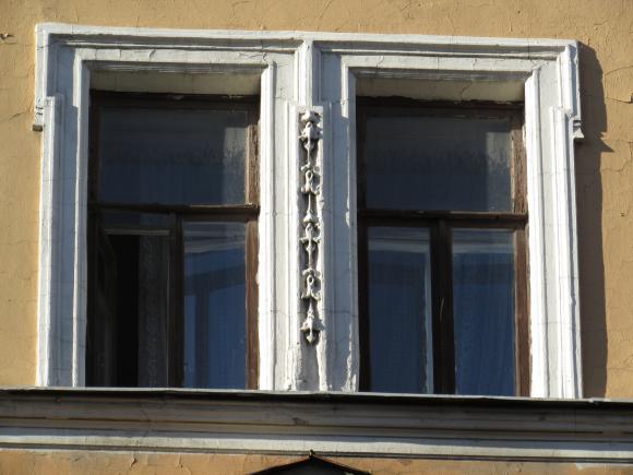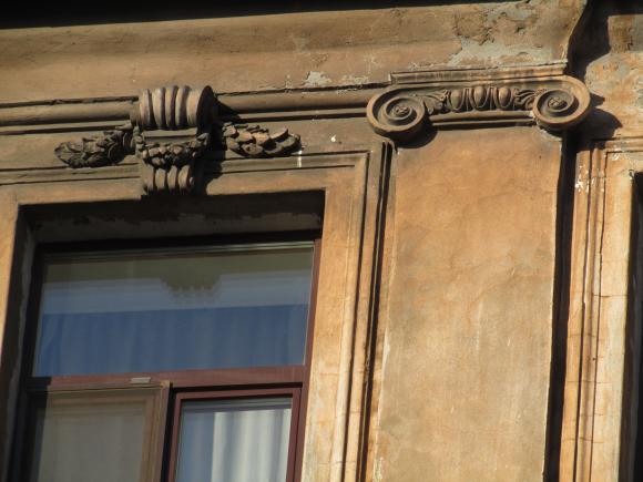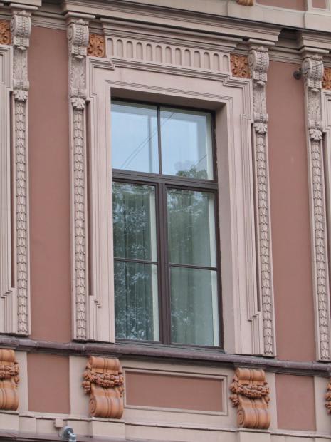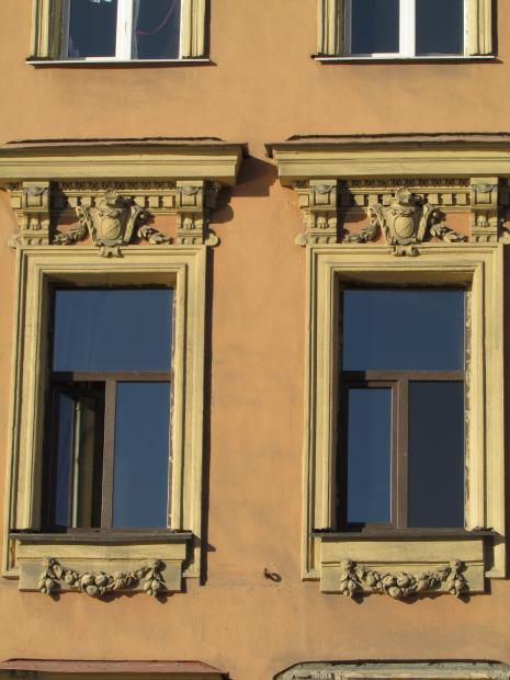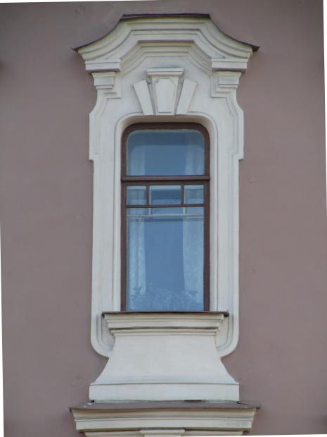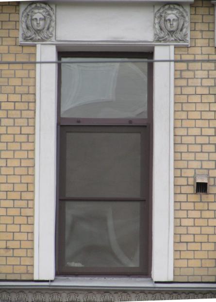 Декор над окнами 2-го этажа в центральной части фасада.
