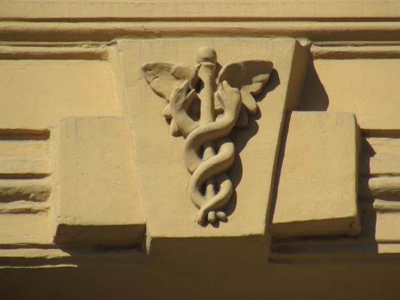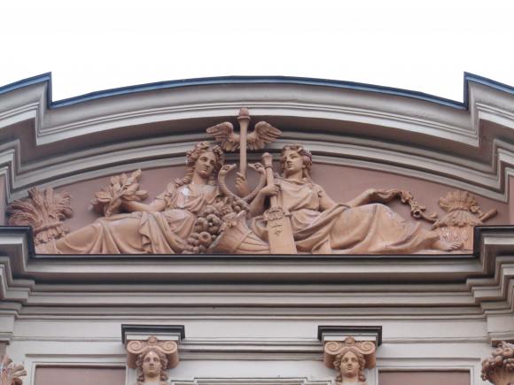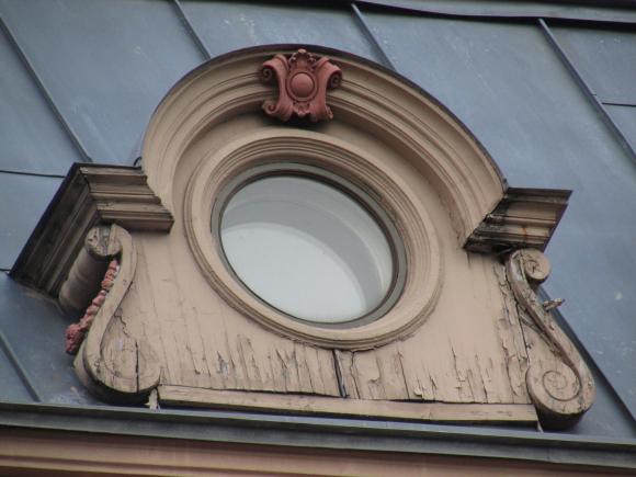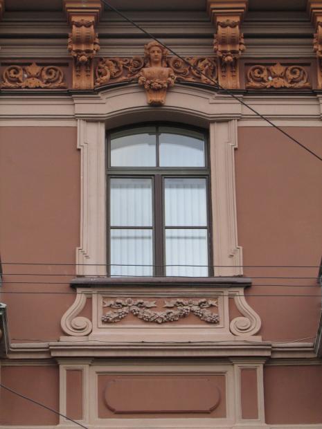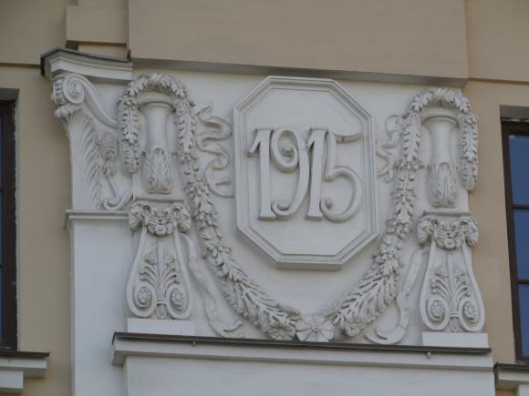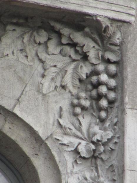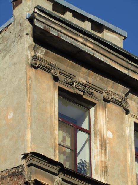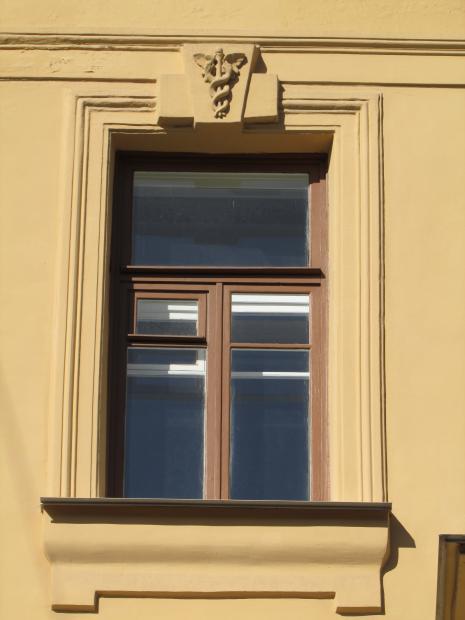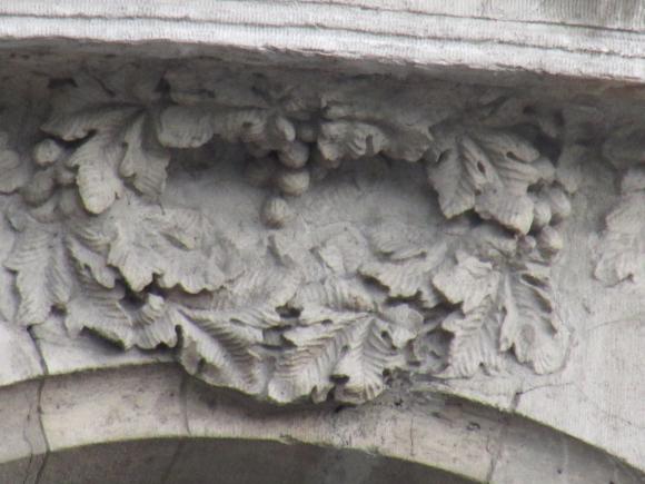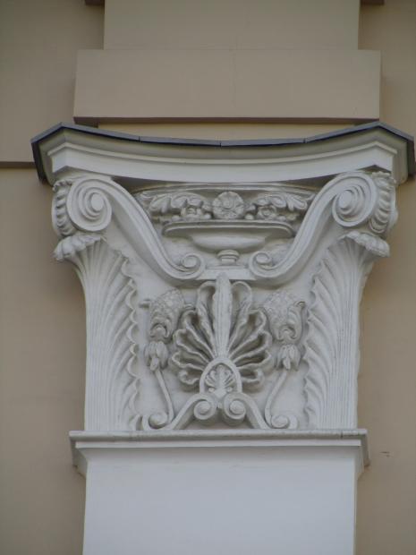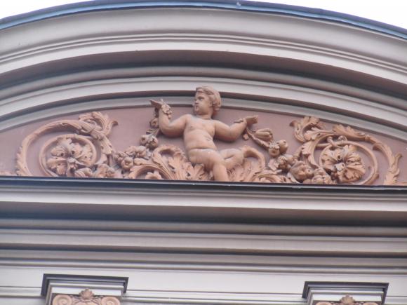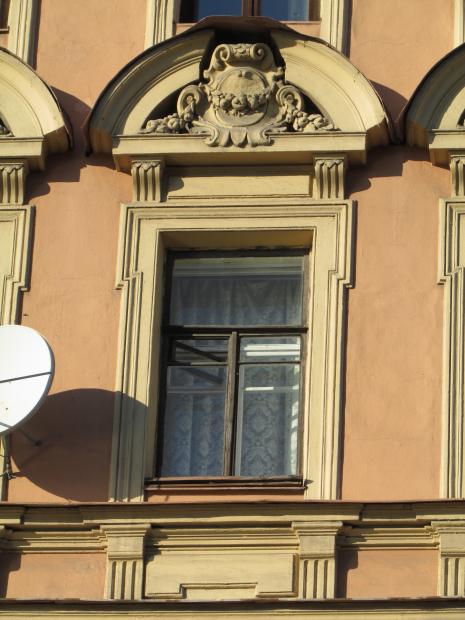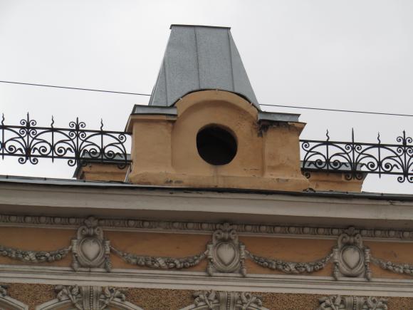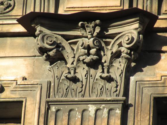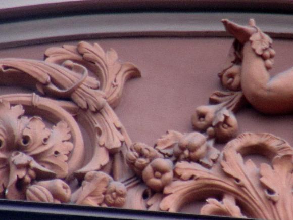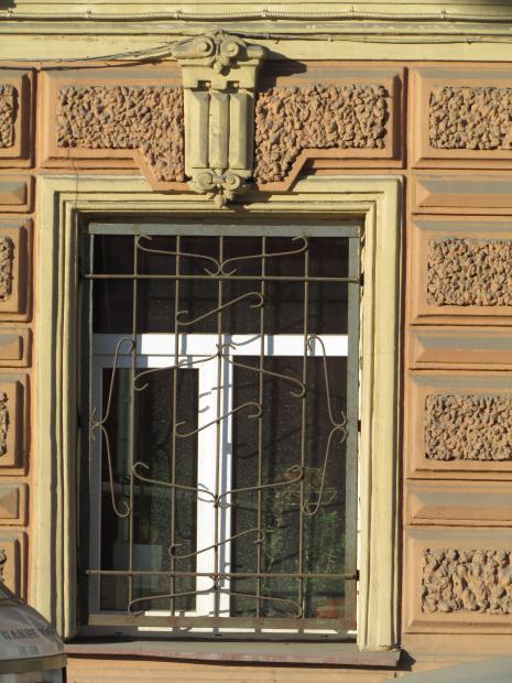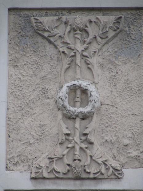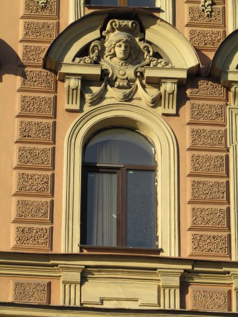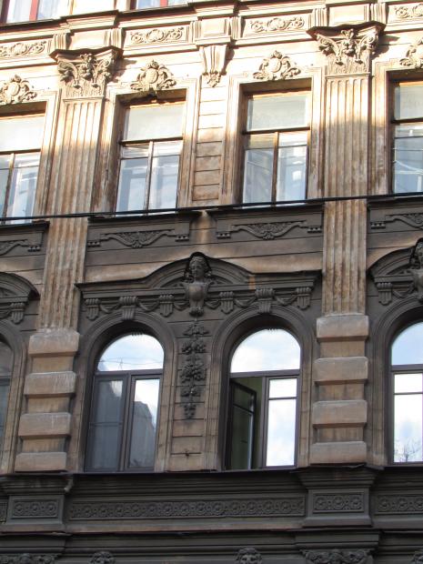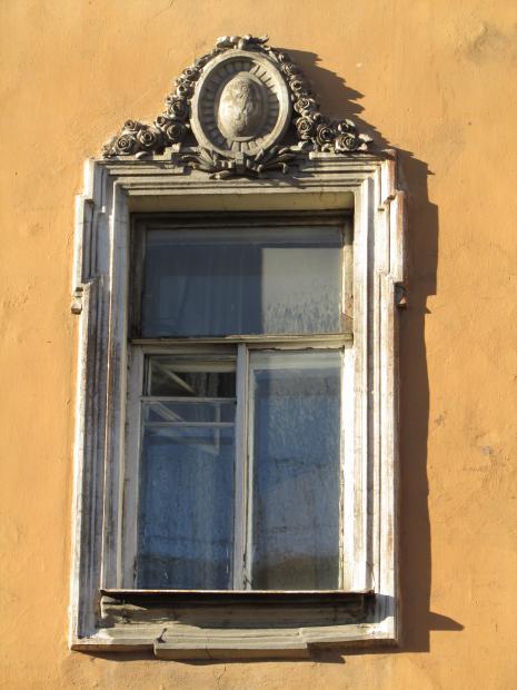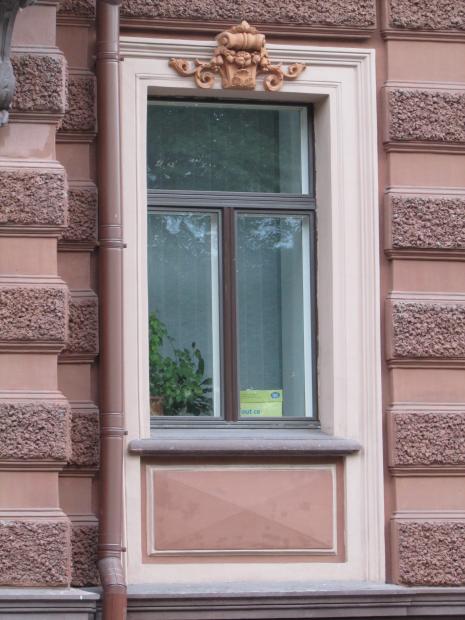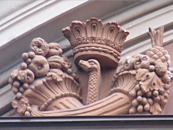 Декор над окнами 2-го этажа в центральной части фасада.