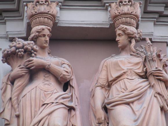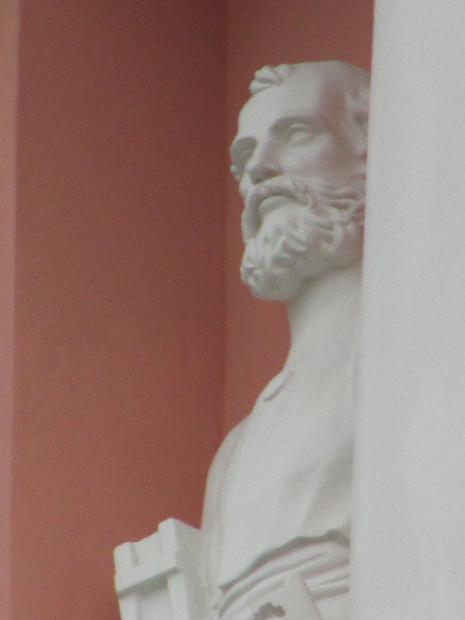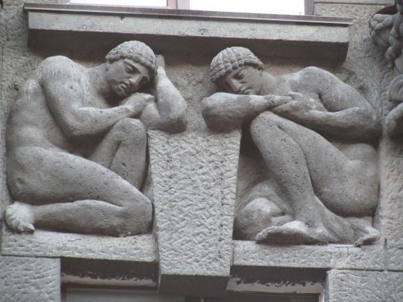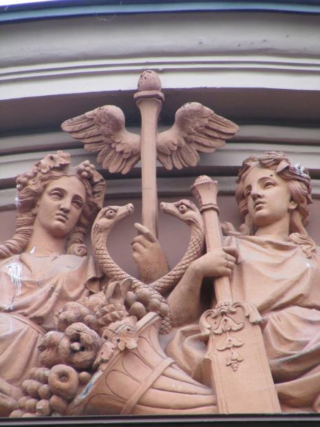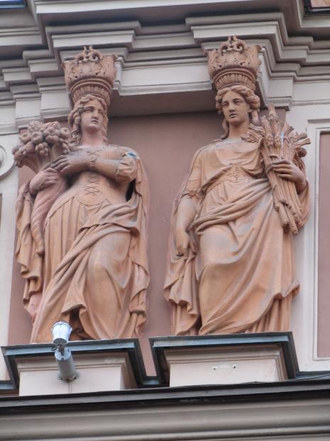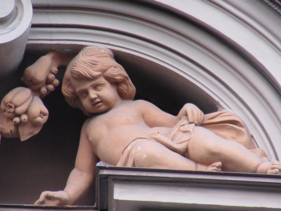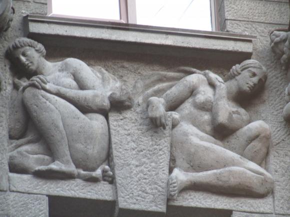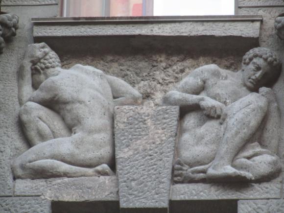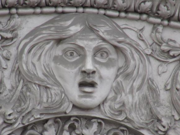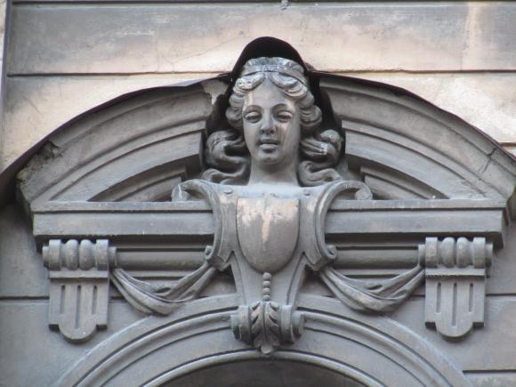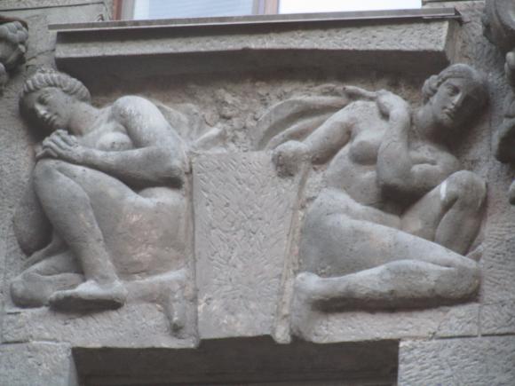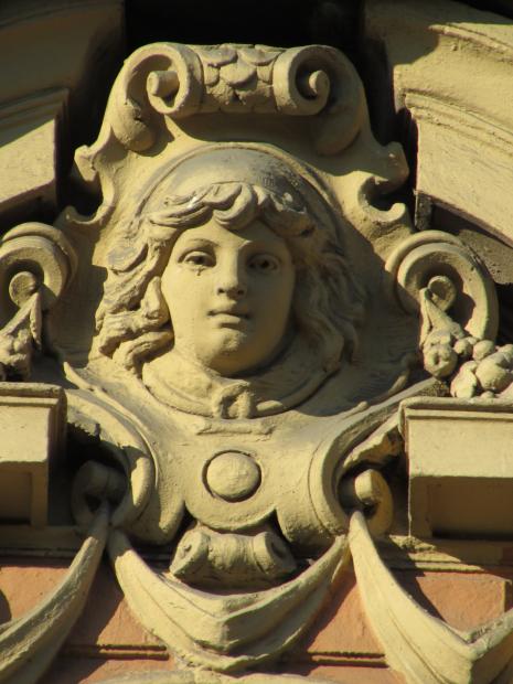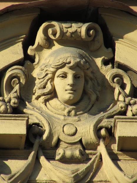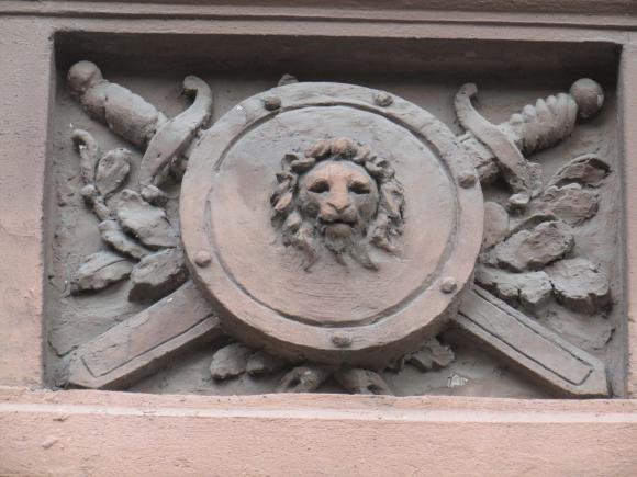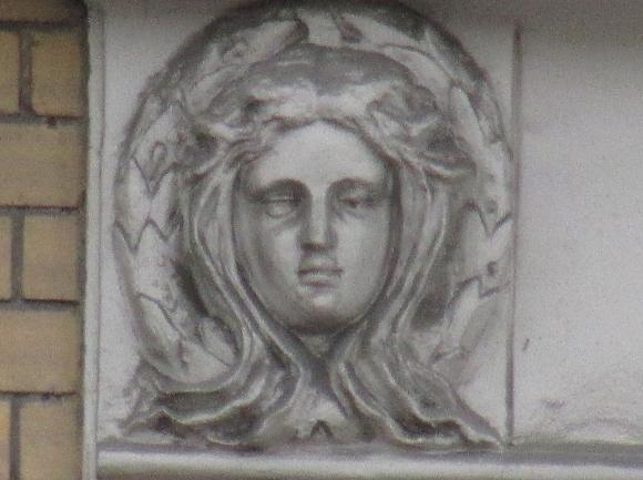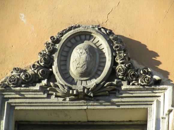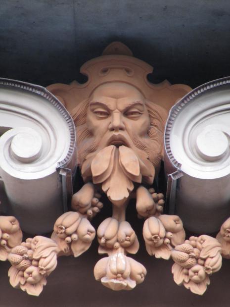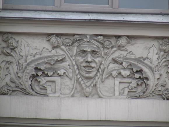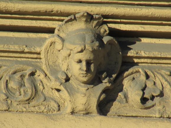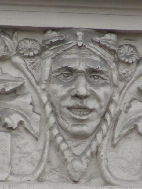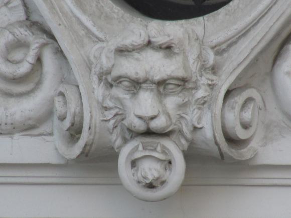 Здесь же, маски над входным дверями.