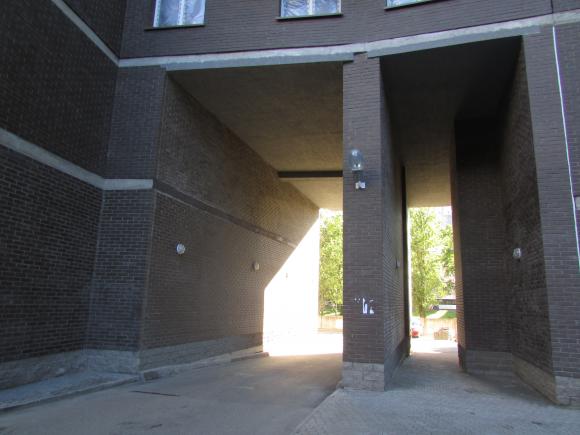 Парадный вход слева(два одинаковых входа).