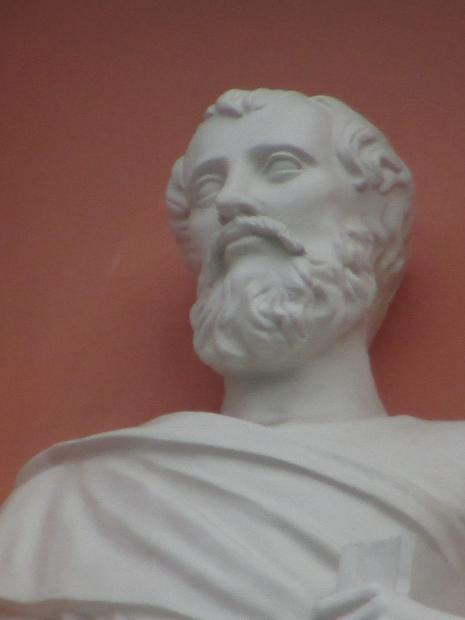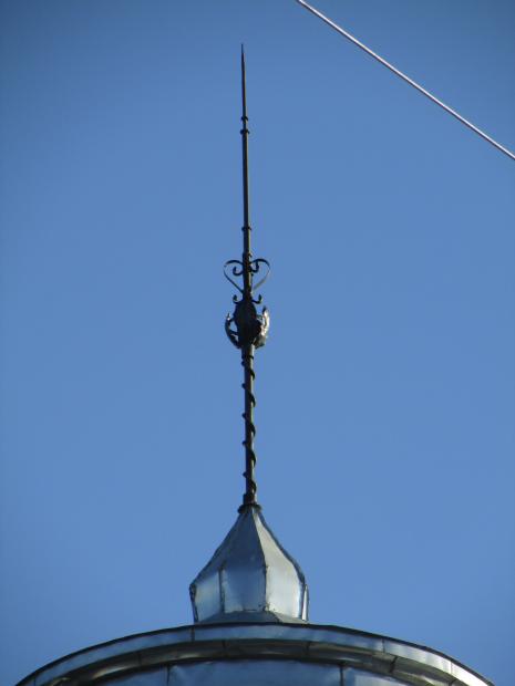 Над центральным окном.