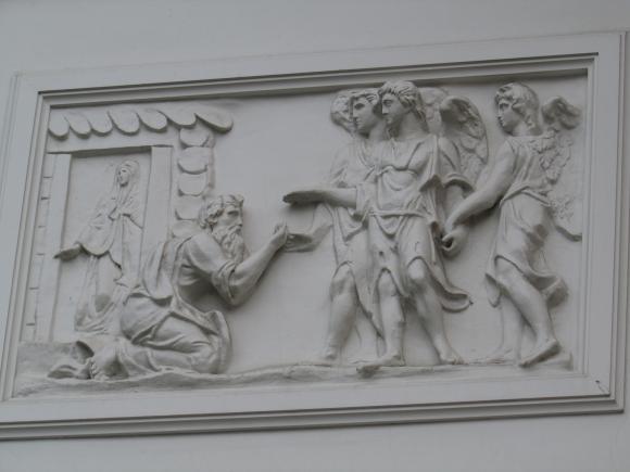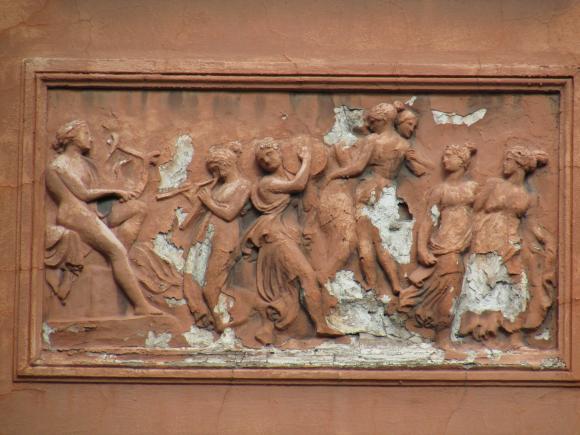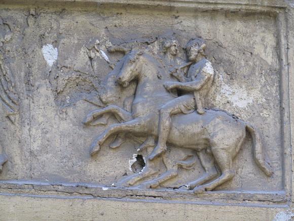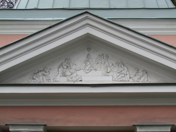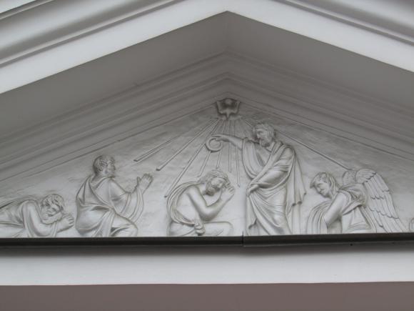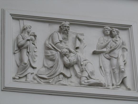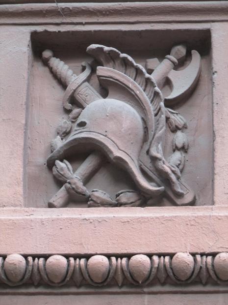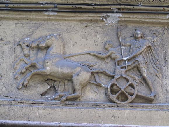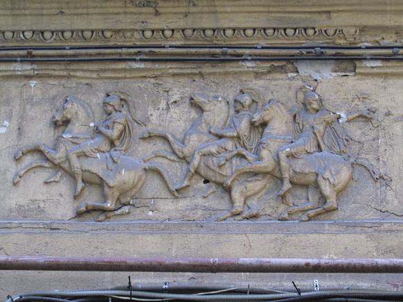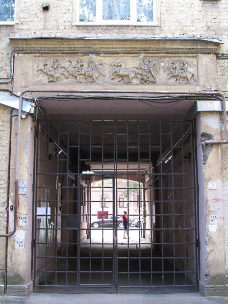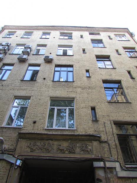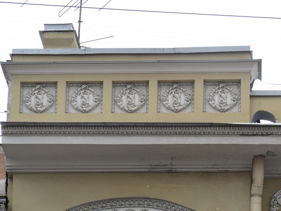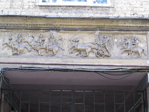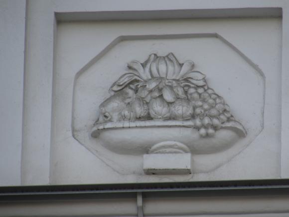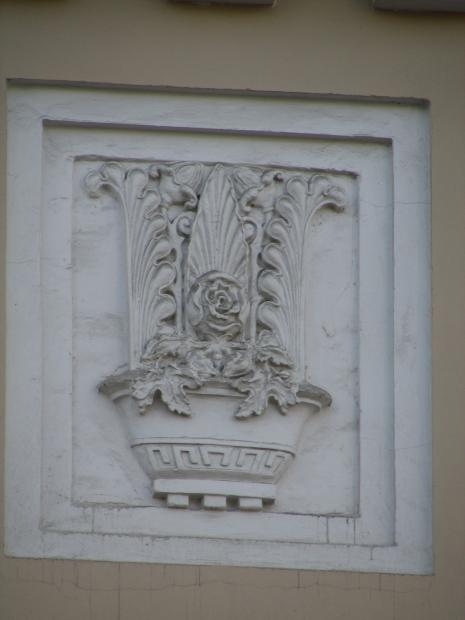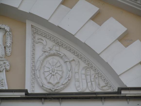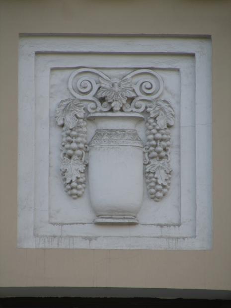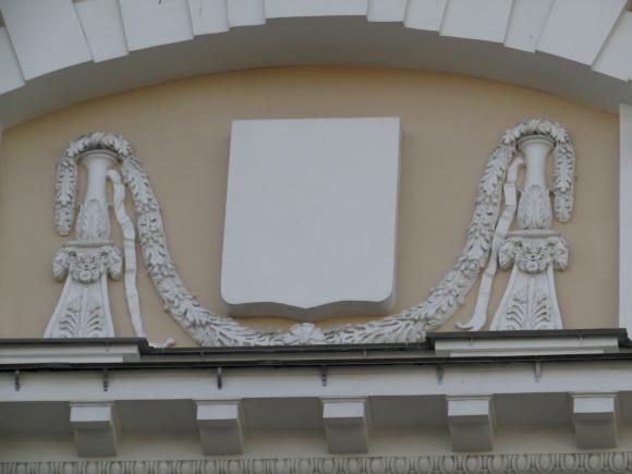 На дворовом фасаде лицевого корпуса, над аркой - барельеф.