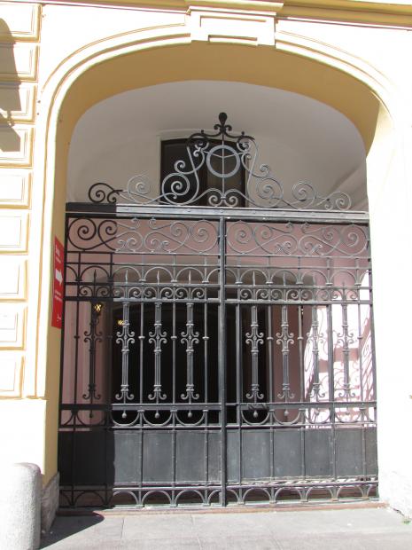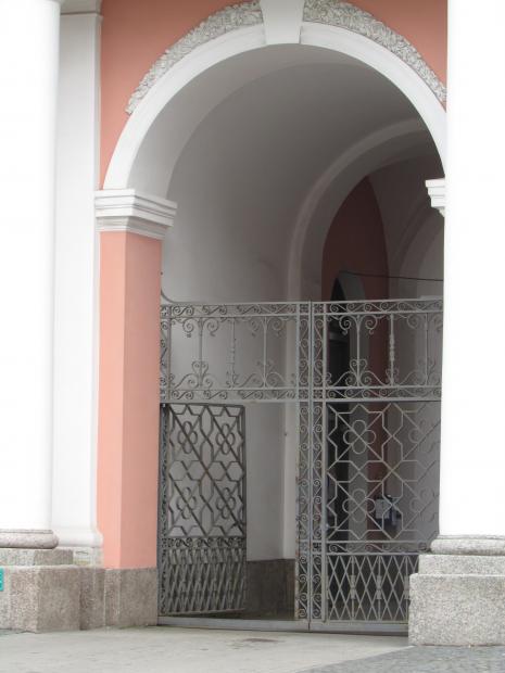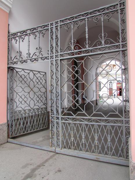 Окна 2-го этажа, по центру, над аркой.