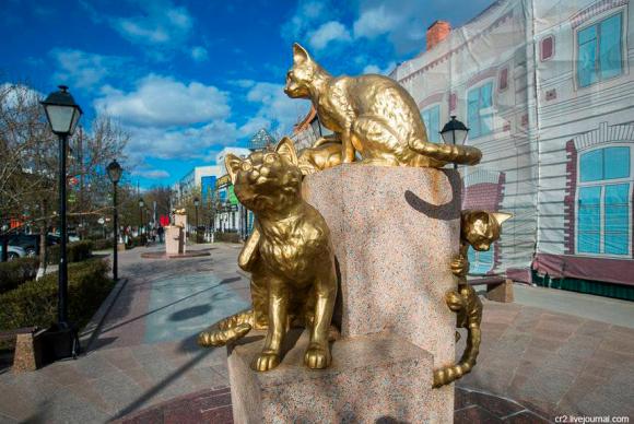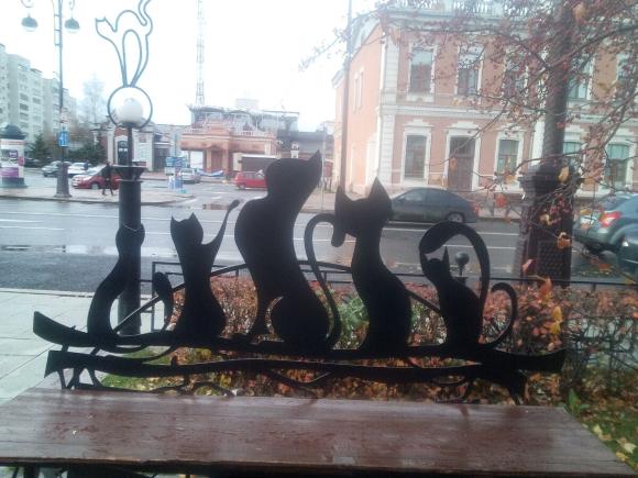 Это вид на сквер с одного конца. Почему 12 - так и не поняла, не помогли даже панорамы Яндекса - три по три гранитных постамента. Хотя может самих кошек как раз 12, но мне показалось больше...