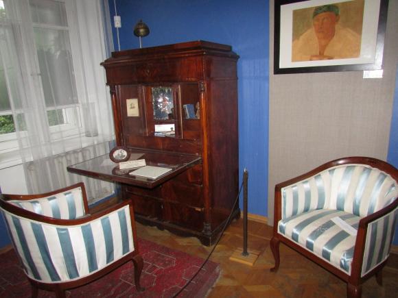 Из представленных предметов особое место занимает темная книжная полка - она была куплена писателем в начале 1920-х годов.