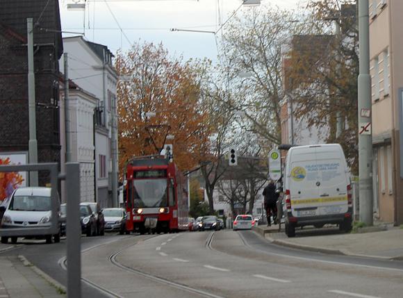 У меня тут не слишком хорошие фото - из машины снимала. Это немецкий Бохум, ли уже Эссен - так и не поняла где между ними граница. Но впечатлило - улицы узкие, изгибы завороты - крнивые явно малого радиуса, да еще и уклоны - вверх, вниз.