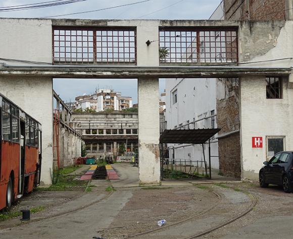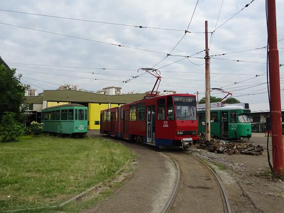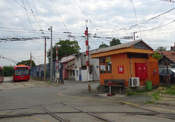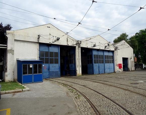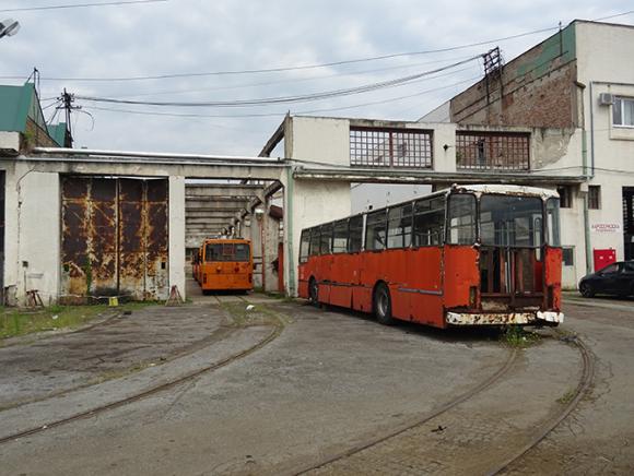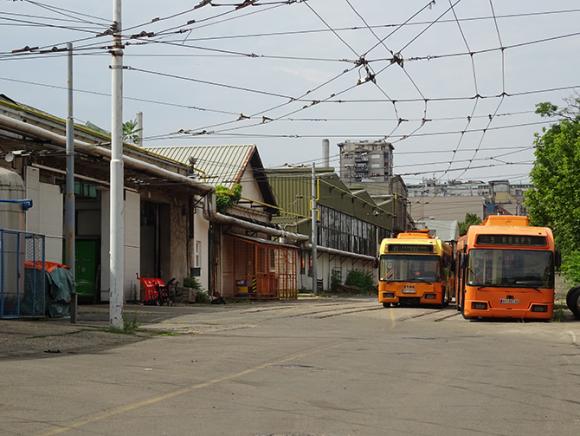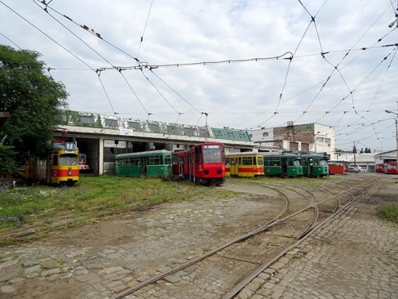 И вообще на одной территории находятся и стоянка старых трамваев, действующих трамваев, троллейбусов и автобусов. Большая территория со сквозым проходом между двумя улицами.