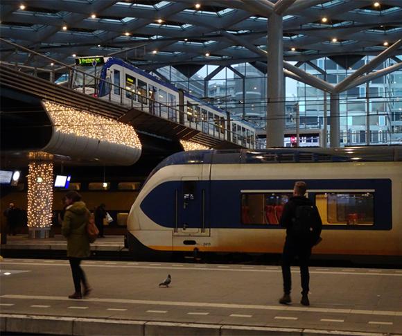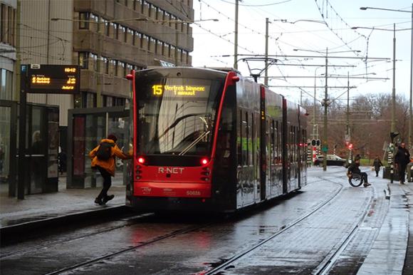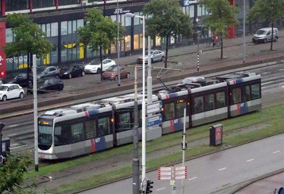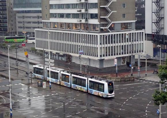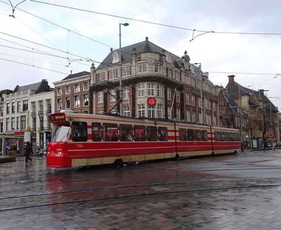 На трамвае я не поехала. Голландская погода может дать фору петербургской: вчера солнце, сегодня (а могло быть и вчера и несколько раз) - проливной дождь. Не жалко 12 евро на поездку, но смотреть на город через залитые водой окна не хотелось. Хотя в хорошую погоду это интересно - маршрут 55 мин по центру города. А окна у них в транспорте всегда чистые.