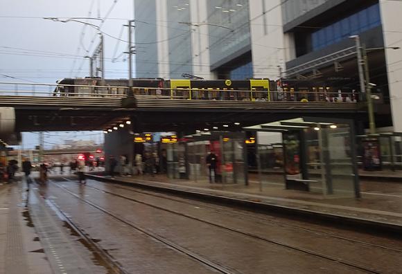 по "мосту" двигаются как трамваи, так и электрички-спринтеры (это электрички на короткие расстояния внутри региона - подвозка между "крупными" городами)