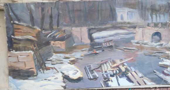 Здравствуйте, уважаемое сообщество! Из семейного архива извлечена картина, кмк - незавершёнка. Писал между 1950 и 1953 гг студент Мухи, живший на Малой Садовой. Прошу помощи в опознании места. Заранее спасибо.