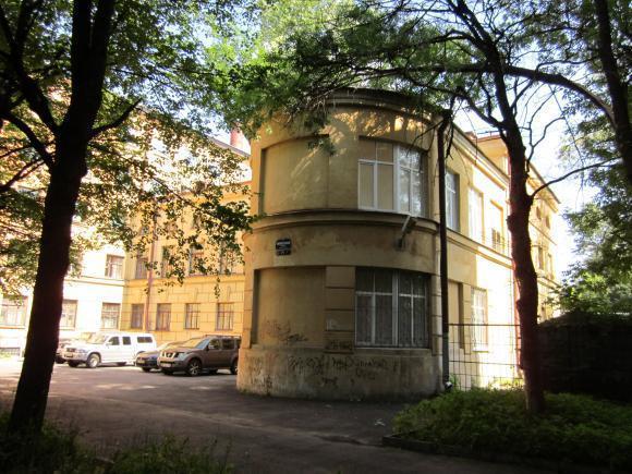 клуб. Справа виден типично конструктивистский закруглённый ризалит.