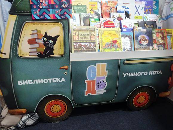 "Буквоед" - барабанчик с кошкой выдает предсказания и небольшие скидки на книги.