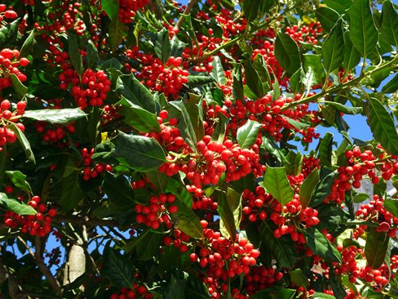 Обычно падуб или остролист покрывается ягодами осенью и сохраняет их всю зиму. Его в оранжировках, венках рождественских используют. Но у нас ягоды весной. Ме даже интересно как это будет дальше.