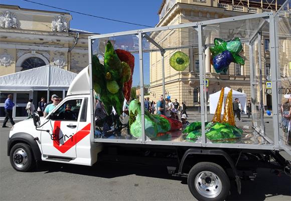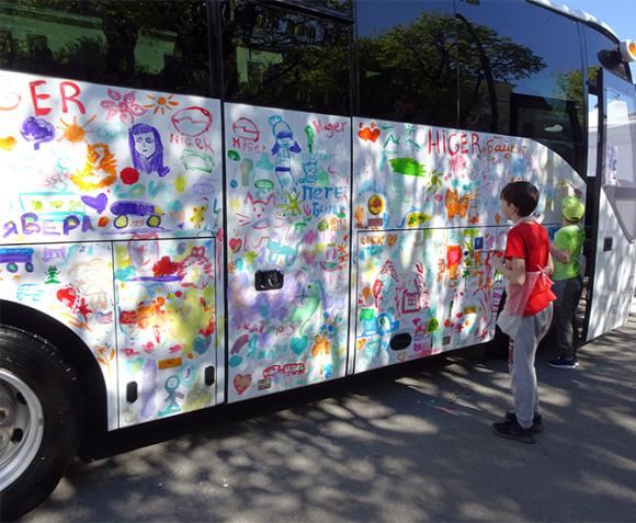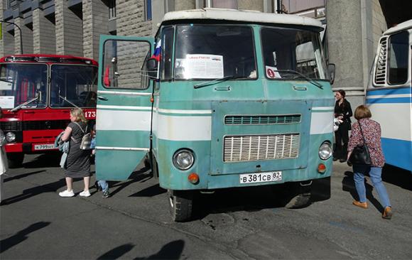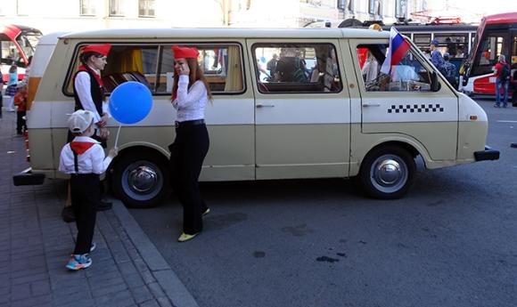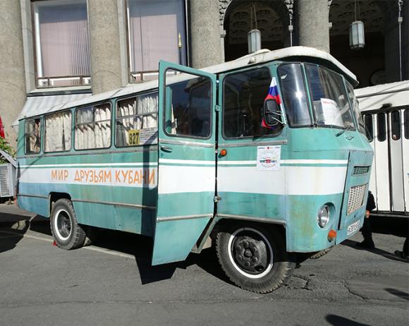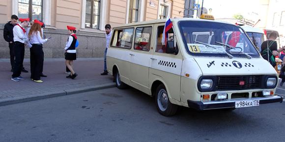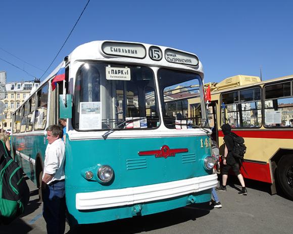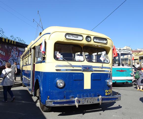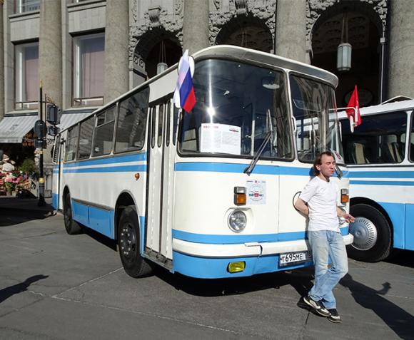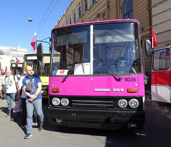 В этом автобусе выставка картин Трофима Токарева "Невский маршрут"