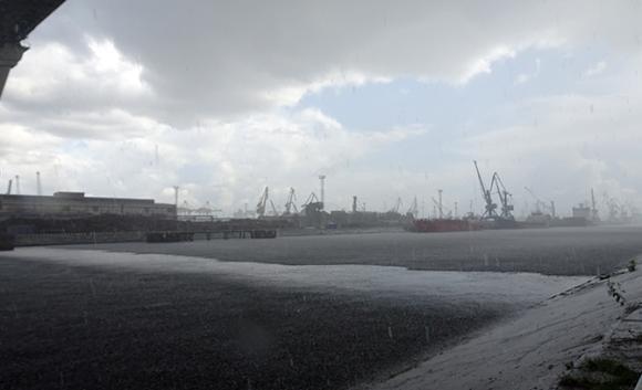 Появился напротив 33 причала минут через 40 - скорее всего подцепляли тянущие буксиры, до того он шел своим ходом