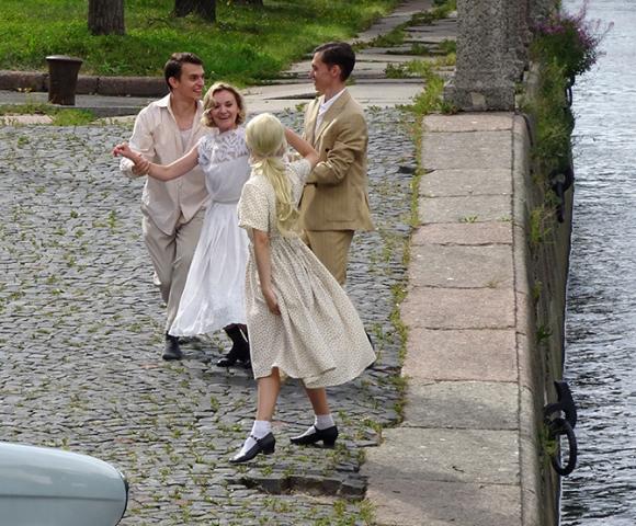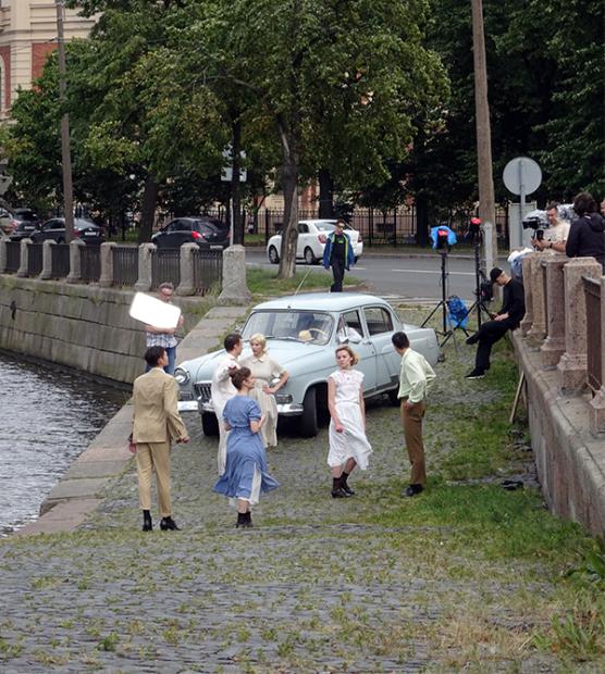 На Фонтанке снимали не то кино, не то клип, а может студенческий фильм. Выглядело очень романтично.