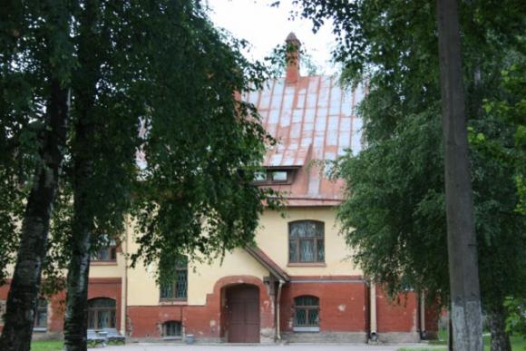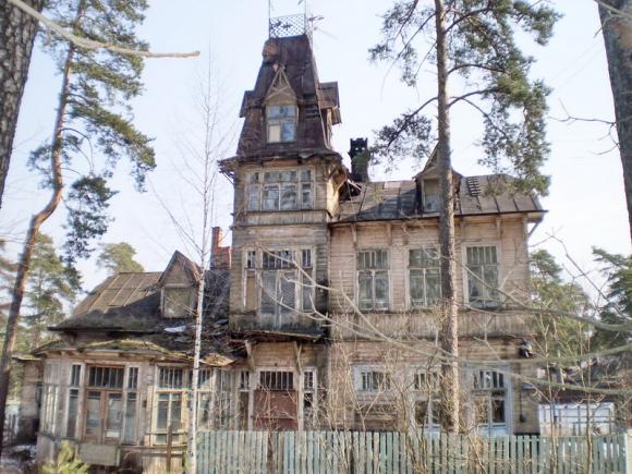 Санаторий "Лесное". Расположен в парке Сестрорецкий Курорт. Когда сгорела деревянная часть здания - мне неизвестно: