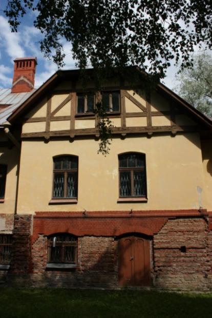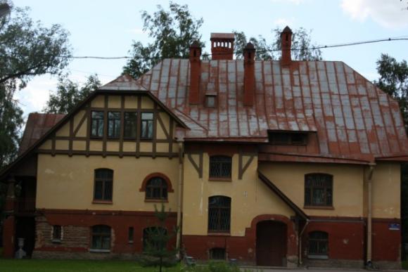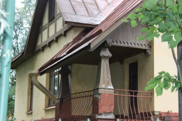 Собственная дача арх.К.К.Шмидта в Павловске, ул.Зверинецкая 29/2(при большевиках Ф.Энгельса), в"англосаксонском стиле".Создана 1902-1907г.Особенно хороши щипцы-в виде трапеций и треугольников.