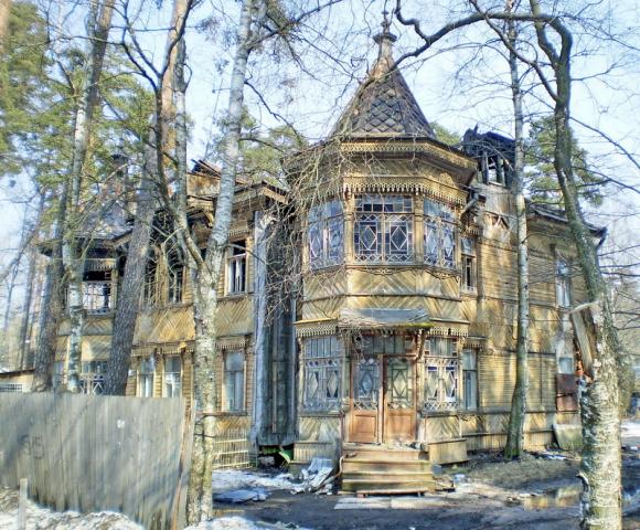 Сестрорецк, ул. Андреева (Железнодорожная), 3. Дом В.Ф. Фомина, 1903-06. Горел 3 января 2010. В настоящее время четверть дома кто-то купил. Дальнейшая судьба пока неизвестна. Территория вокруг дома огорожена ленточками, внутрь рекомендуют не заходить.