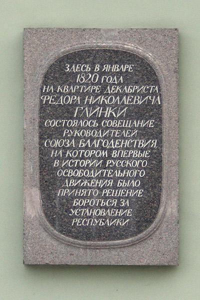 А вот интересная мемориальная доска... тем, что её нет теперь... Её, кстати , не было и в достаточно полном перечне энциклопедии СПб в инете, а теперь нет и на здании... Нет, конечно, может, уже снова повесили, склеили, восстановили, или новую изготовили (вряд ли?)... не был там за посл. время...