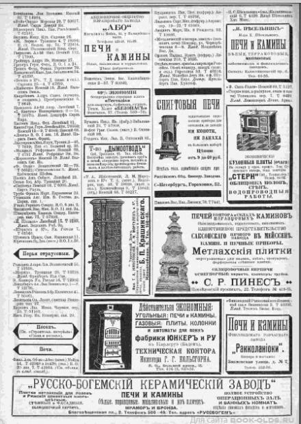 Реклама печей и каминов 1914 год. "Весь Петербург"