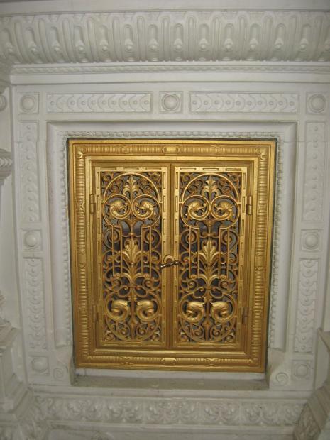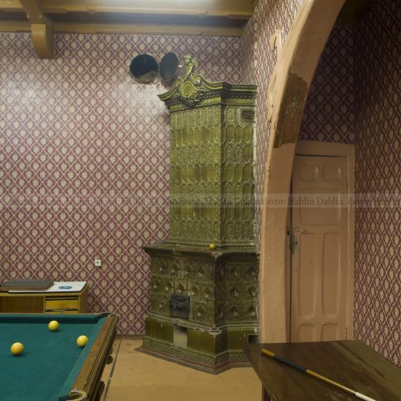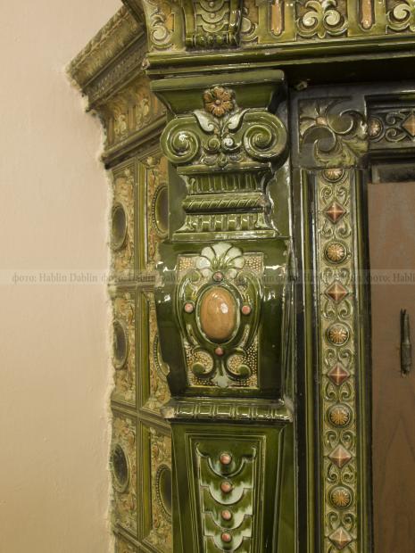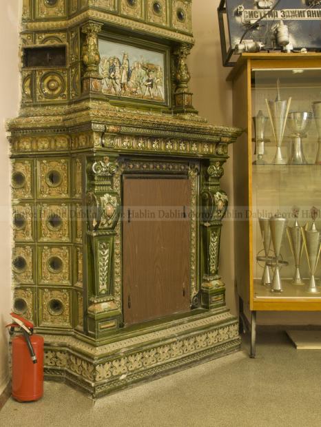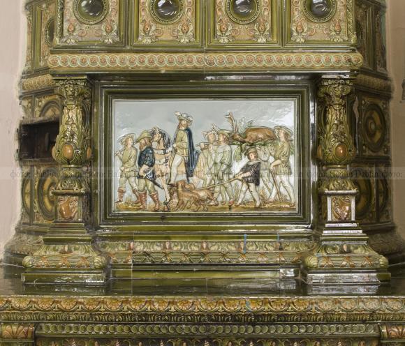 Помещение,смежное с бильярдной,в конце той светлой галереи.Целых две печи,одинаковых.