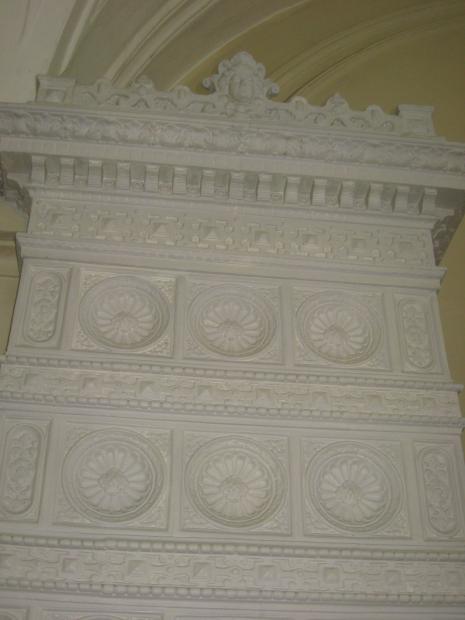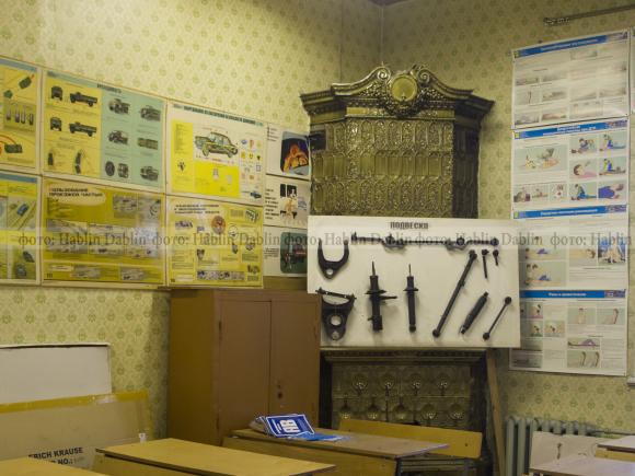Учебный класс,комната с громадным окном и жалкими остатками витражей.Но это в другой теме,здесь только печи: