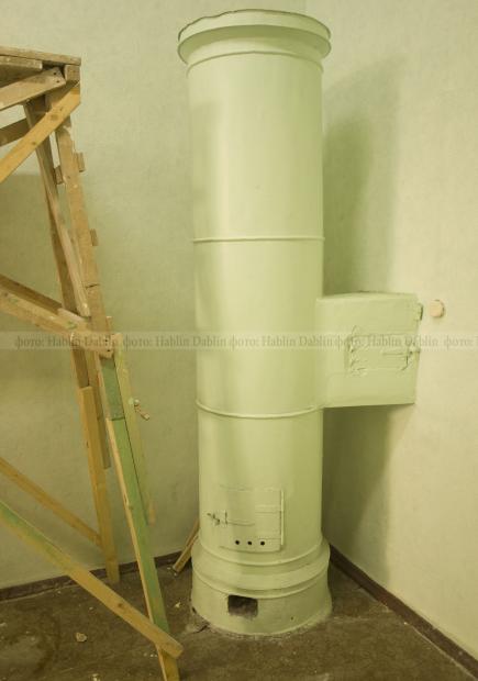 И напоследок гадкий утёнок :печь-контрамарка,обнаруженая в комнатушке,где с ней соседствует бюст Ленина,российский триколор на вешалке и строительные кОзлы..